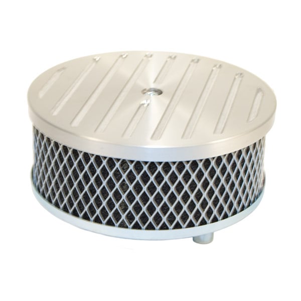 These high-performance round air cleaners are the ultimate in low-restriction air filtration. This is made specifically to fit stock carburetor applications. Includes billet aluminum top, stamped steel bottom and foam element; 5-1/2″ diameter x 2″ tall with 2-1/16″ diameter flange.