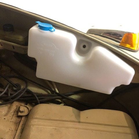 This handy kit is designed with a washer bottle that fits like the OEM bottle for the Beetles made in Mexico, but it uses an electric pump instead of the air pressure from the spare tire. This bottle mounts on the inside of the driver’s side inner fender well, right in front of the brake fluid reservoir. The bottle mounts onto a longer fender bolt (supplied in the kit).